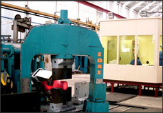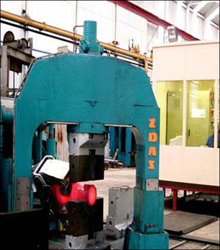 Smaller components are manufactured on the 400KJ DG40 counterblow hammer. Both counterblow hammers are full computer controlled to ensure repeatability of the process. The 2 counterblow hammers are supported by a Zdas 630T CNC controlled pull down press which is utilized in the manufacture of pre-forms for asymmetric structural parts and long aero engine shafts.